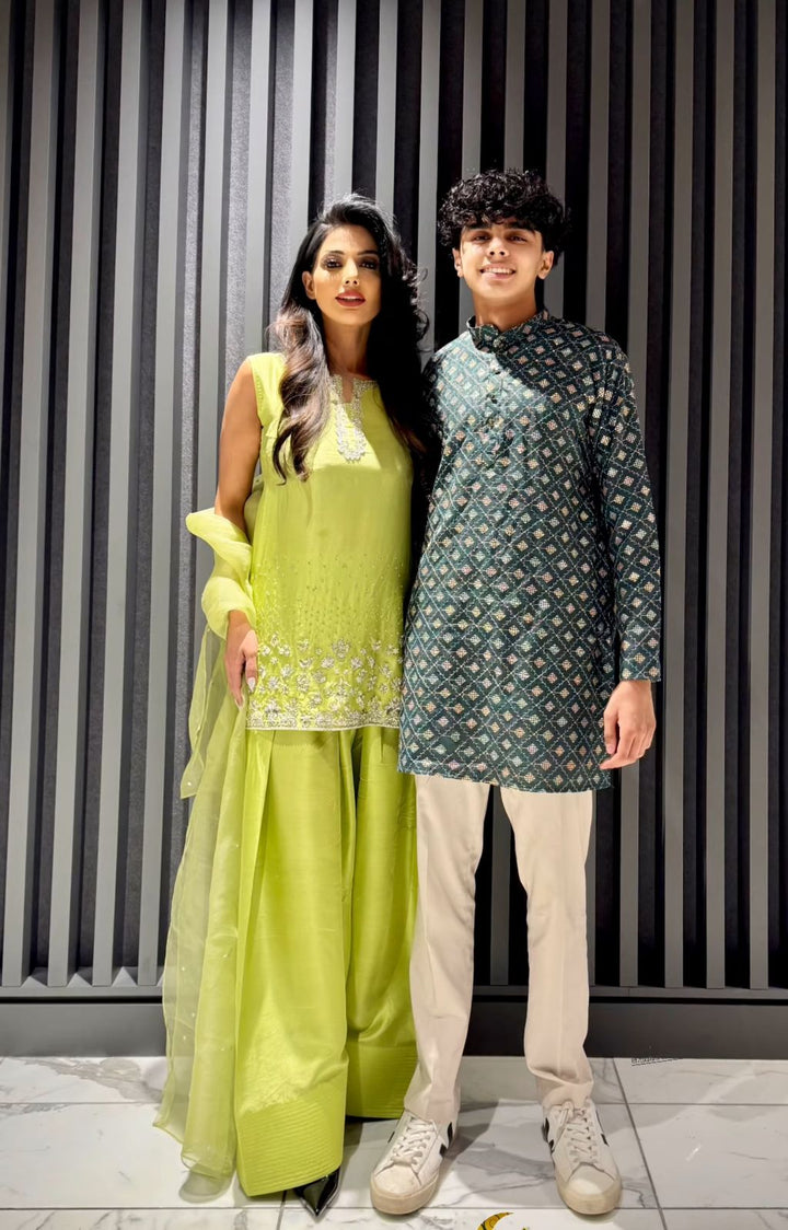 Vibrantly adorned in a striking Parrot Green, this pure raw silk shalwar kameez features exquisite hand-embellished details that add a contemporary touch to traditional elegance. The intricate embellishments create a glamorous visual appeal, making it a statement piece. Finished off with a graceful organza dupatta, this outfit is perfect for making an impression.